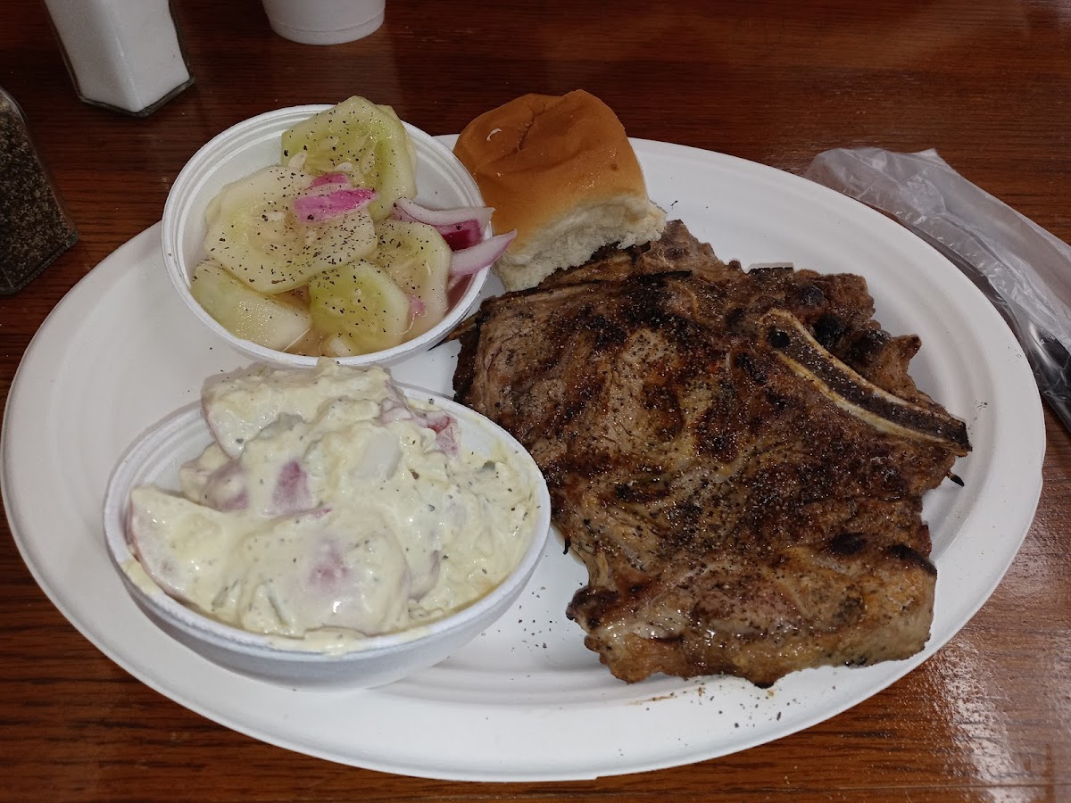 We tried the lunch special, a ribeye steak with 2 sides and a roll for $12.99. The steak was cooked just as I ordered it. The sides you can pick from were onion rings, pasta salad, orange fluff, chicken salad and ff. I tried the chicken salad which was delicious. We also had homemade broccoli cheddar soup which was thick and creamy. The fried bologna sandwich with lettuce and tomato was delightful.The staff are very nice, friendly and quick. They had peach cobbler, apple pecan cobbler for dessert. We will go back for more good country cooking.