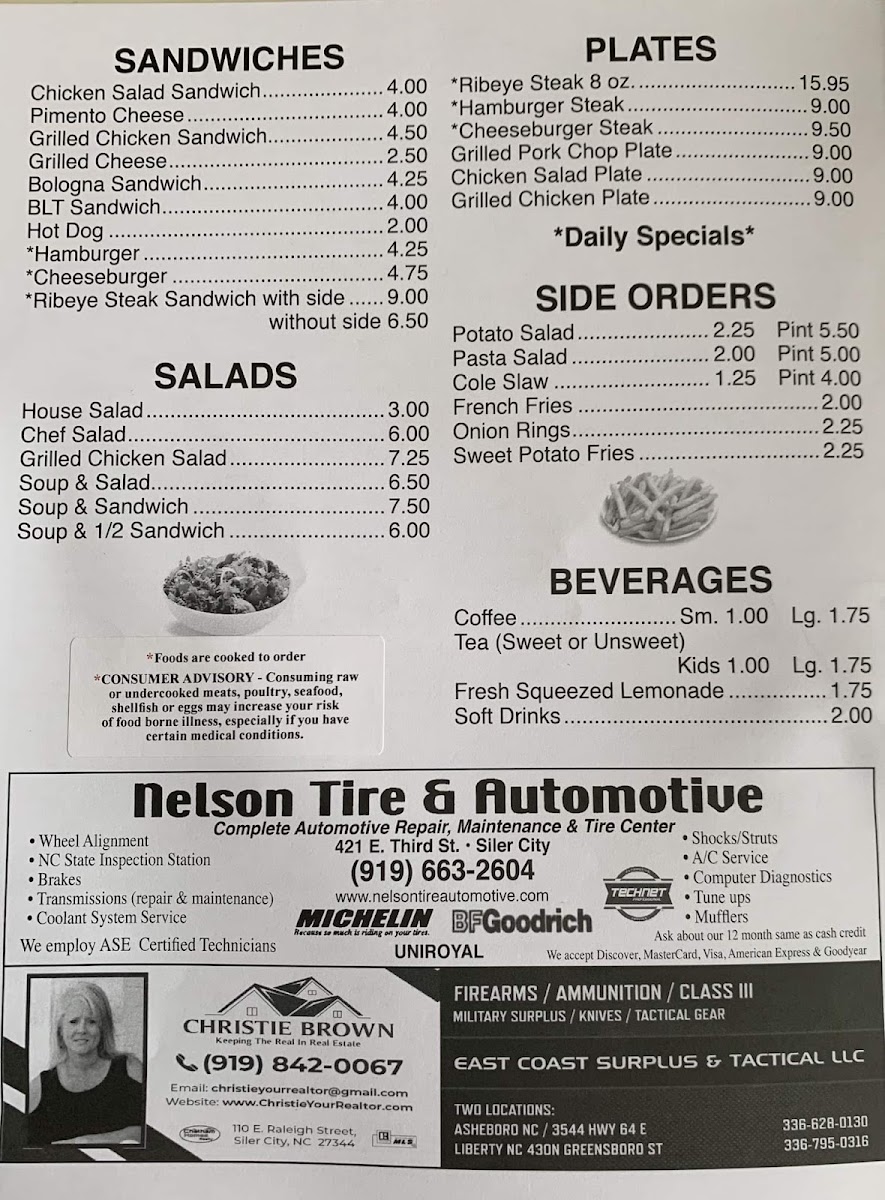 Guests can enjoy meals at any time of day—whether stopping in for a midday sandwich like the chicken salad or grilled chicken option, or settling in for a dinner plate with sides such as mashed potatoes and homemade broccoli cheddar soup. The menu highlights familiar comfort foods that pair well with the cafe’s down-to-earth vibe, making it easy to unwind and enjoy a satisfying meal.